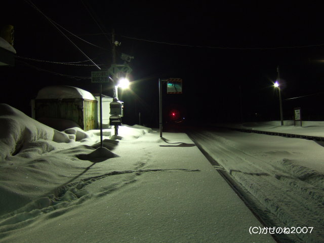 暗い中に、ポツンと駅舎の灯りが目立つ。