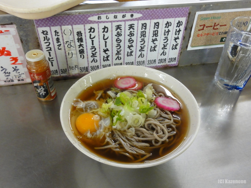 待合室の一角に立ち食いの駅そば屋があるのだが、駅舎移転前に営業終了されてはと思い、島抜け後にお天気屋での昼食をパスして行ってみたが、何事も無く営業していた。