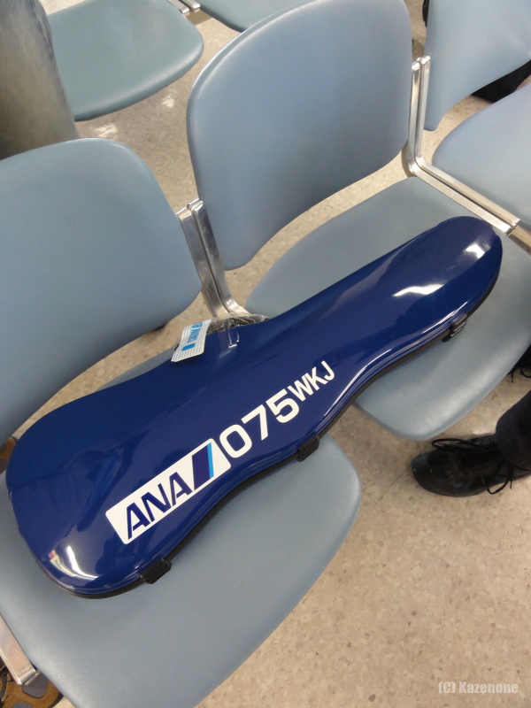 『ばっかす』に泊まっていた、お知り合いT氏のお知り合い(笑)が持ち込んだ物で、自前のバイオリンケースの寸法が機内持ち込み可能寸法を超える場合に貸してくれる物。